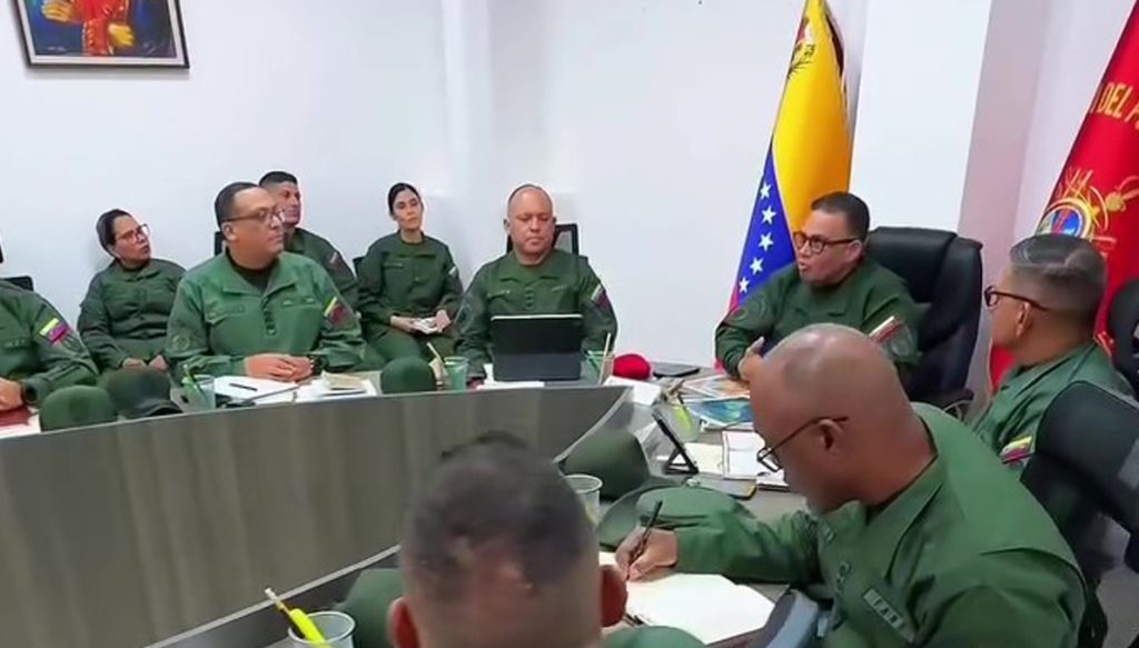 En un importante encuentro para la seguridad de la Nación, el MPPD GJ Gustavo González López se reúnió con el Alto Mando Militar e integrantes del Centro de Doctrina de la FANB “GJ Jacinto Pérez Arcay”; en mesa de trabajo con el objetivo principal de fortalecer los estudios estratégicos para la defensa integral, consolidando así la artillería del pensamiento a través de debate académico estratégico y táctico que permite elevar el nivel de Apresto Operacional de nuestra Fuerza Armada Nacional Bolivariana.